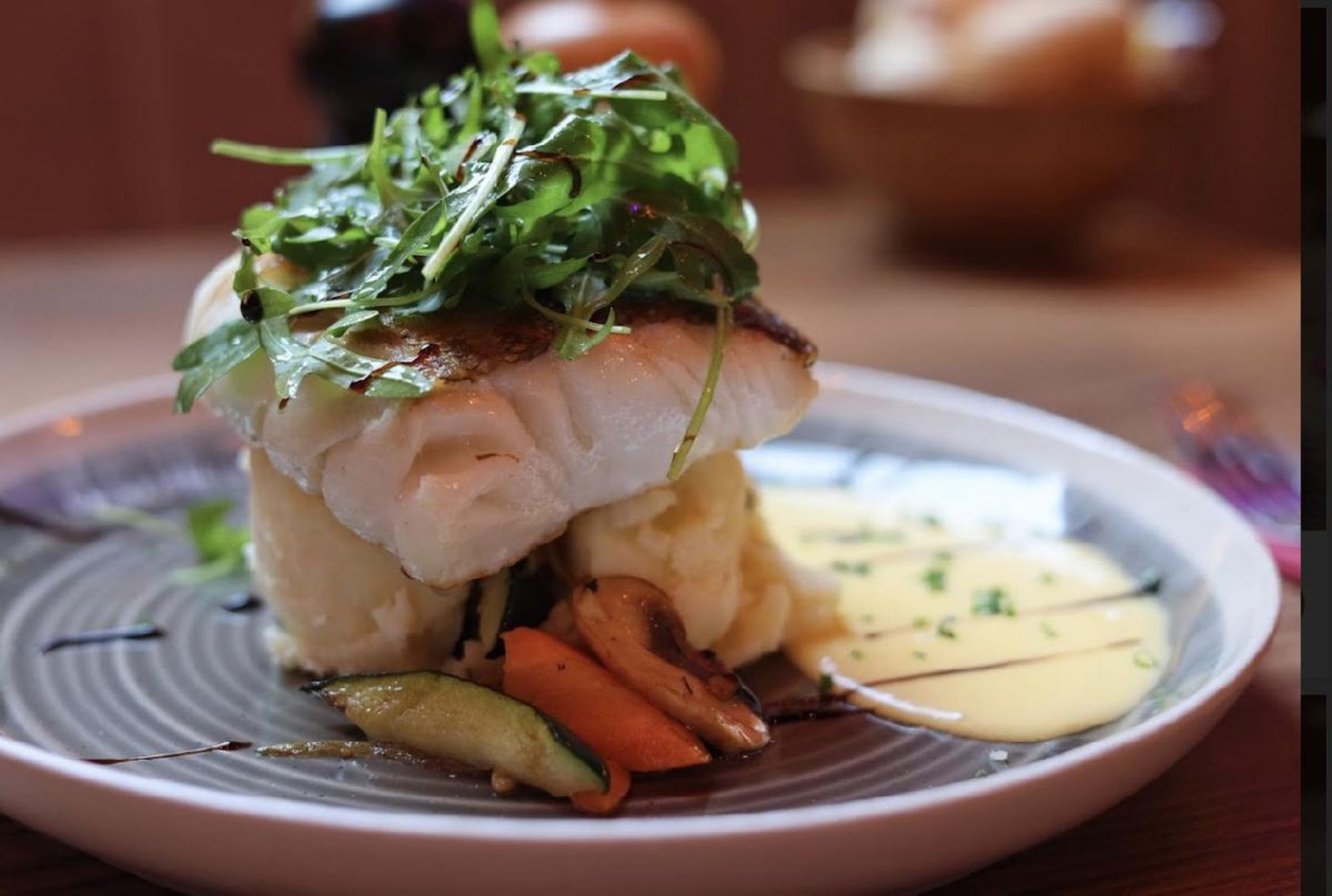 Cabillaud rôti, sauce mousseline à la ciboulette,