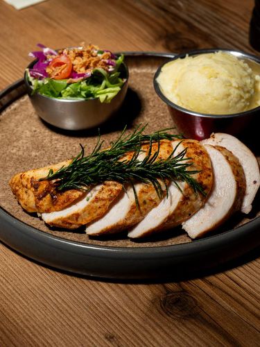 Blanc de poulet grillé & croûtons à l'huile d'olive