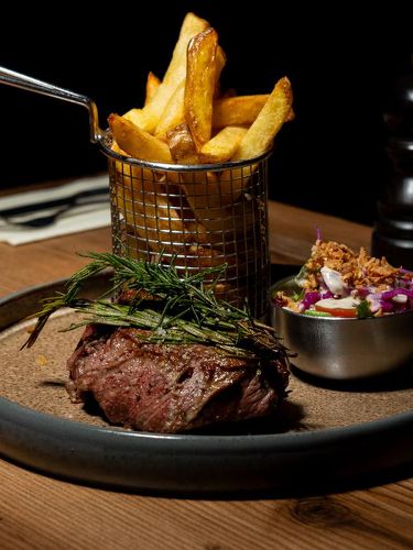 Sauces au choix : sauce au poivre, sauce archiduc ou sauce caramélisée • Accompagnement au choix : purée maison, frites fraîches ou frites de patate douce.